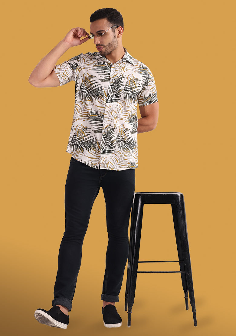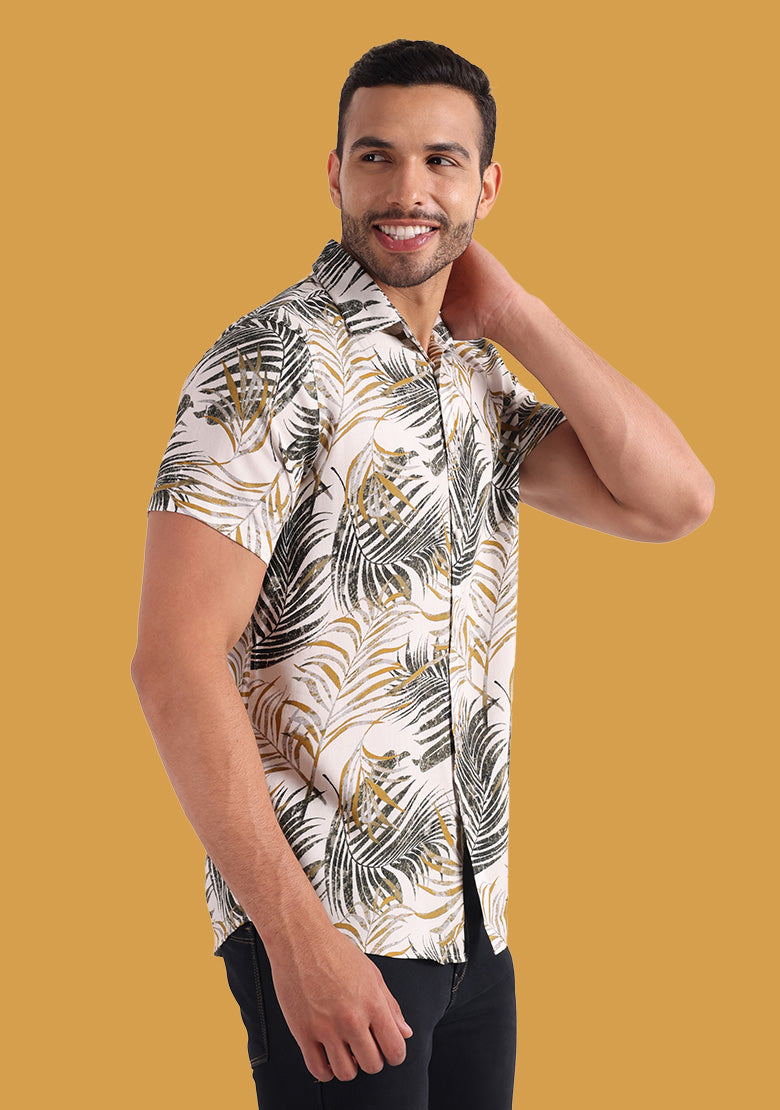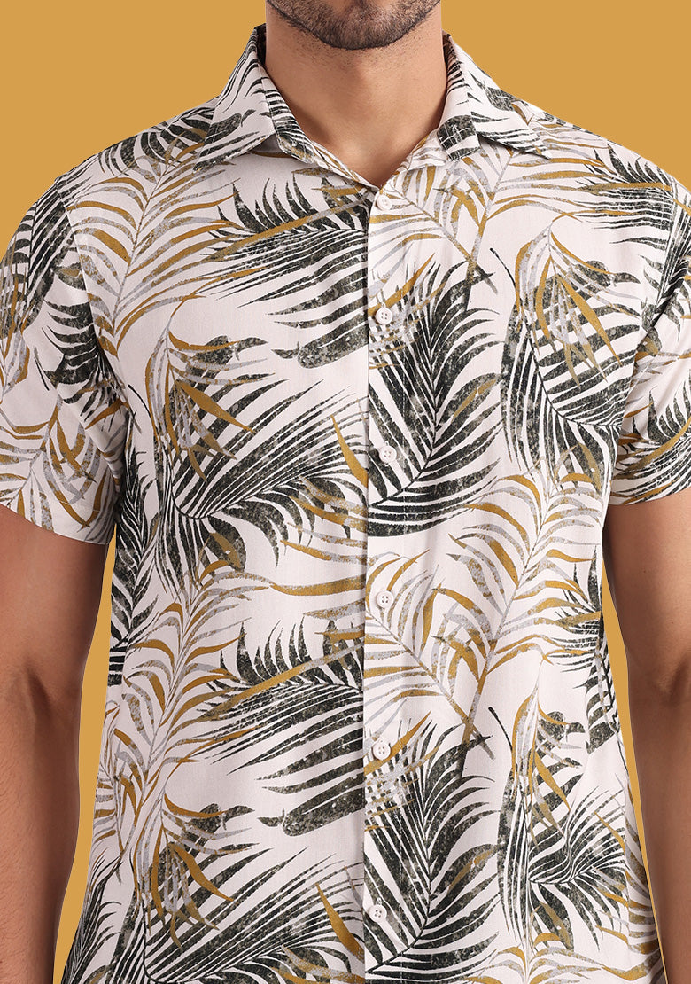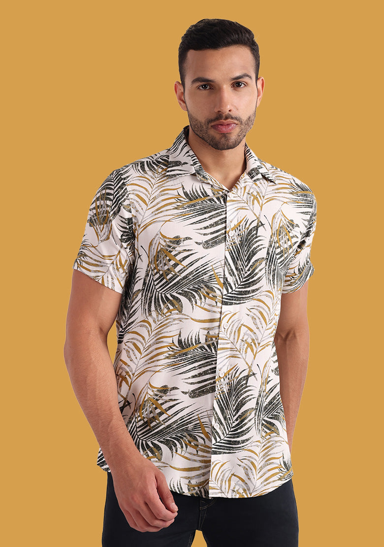 Product Details: Fit: Regular Color: Grey Pattern: Printed Closure: Button Fabric: Viscose Rayon Collar: Spread Collar Product Length: Regular Hemline: Curved Sleeves Length: Short Sleeves...