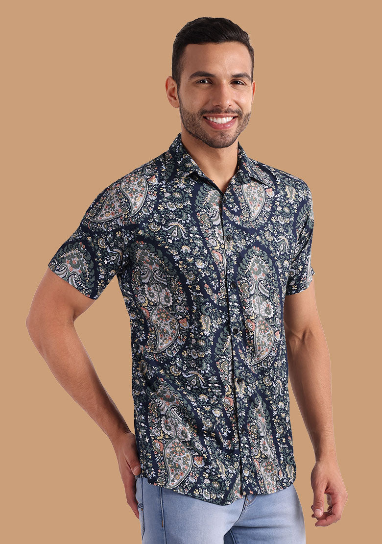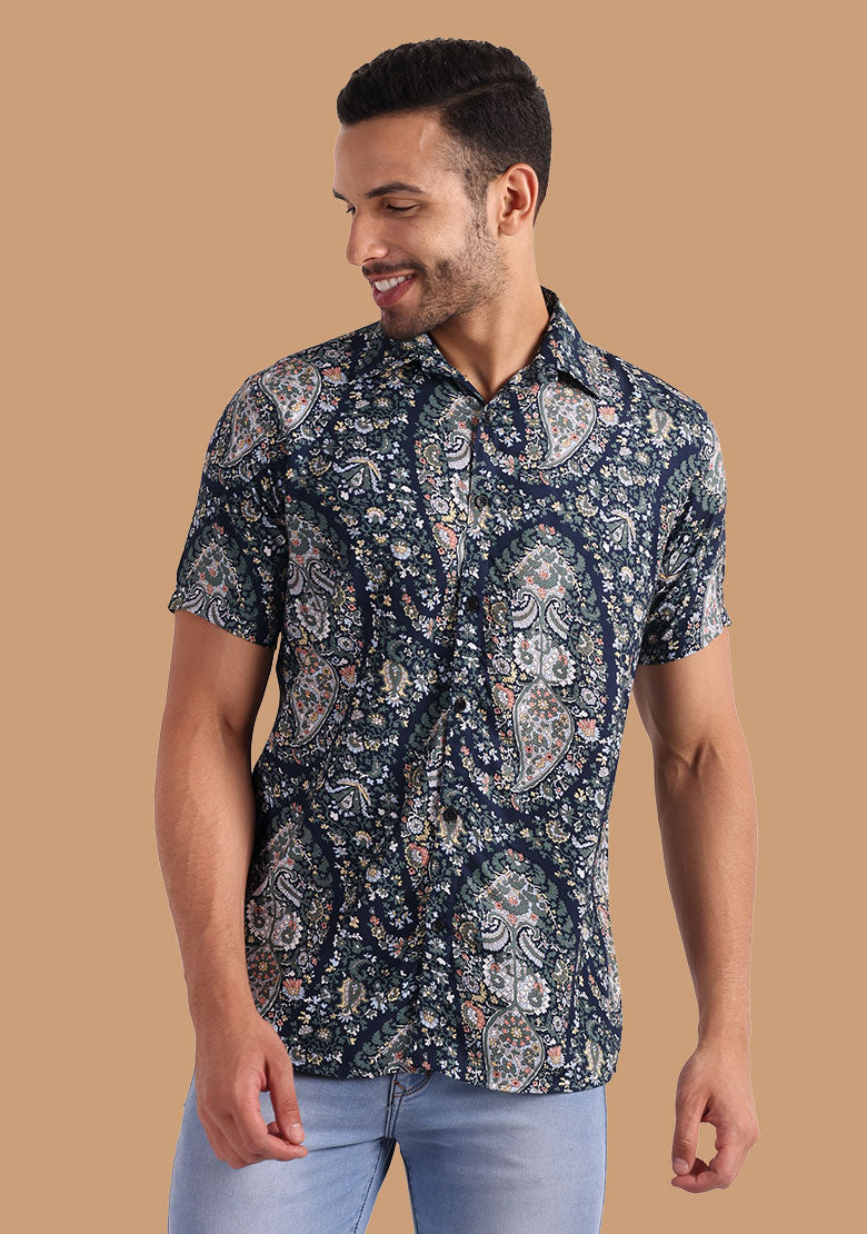 Made with high-quality viscose rayon, this shirt is designed for durability and comfort. To maintain its pristine condition, machine wash it with like colors in cold water, dry it in the shade, tumble dry on low, and iron the prints on the reverse side.