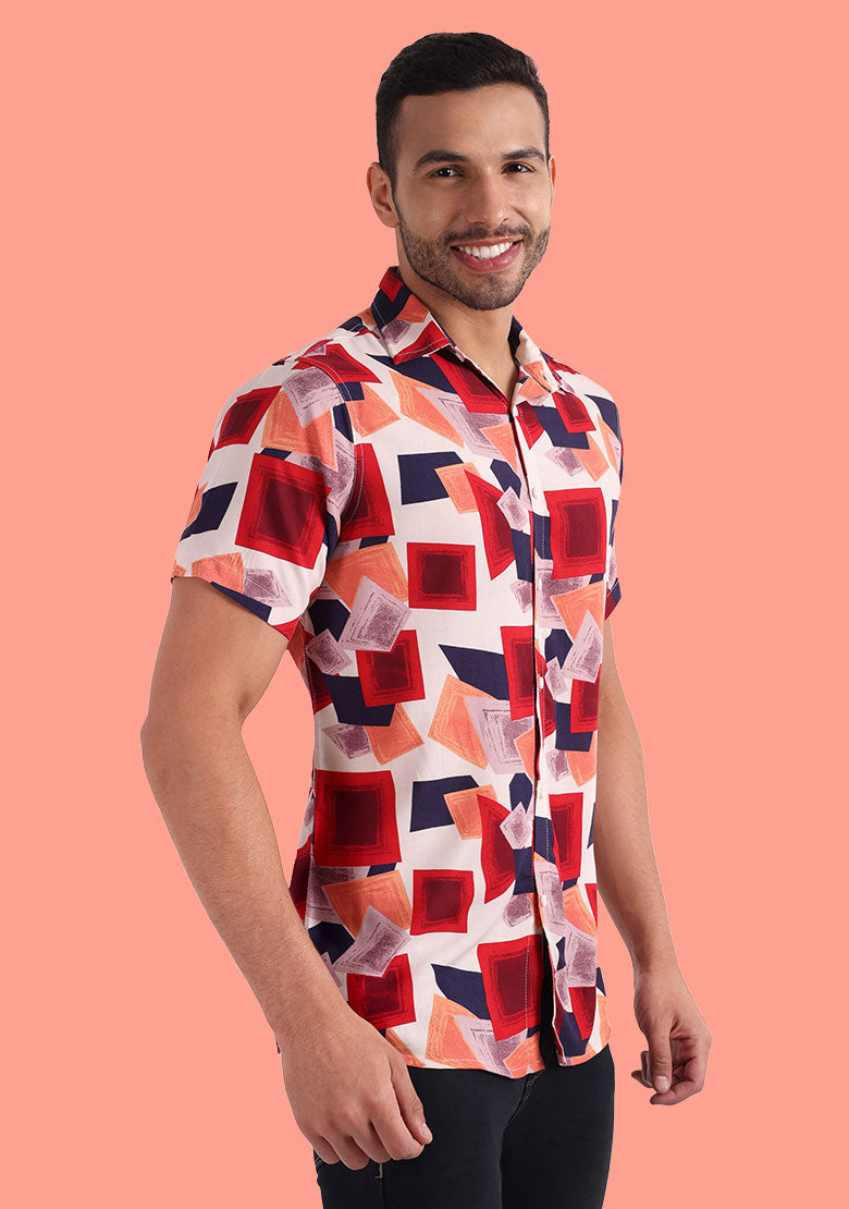 Introducing our latest addition to the collection, a multi-colored printed shirt made from high-quality Viscose Rayon material, perfect for the summer season. The shirt is designed to provide a regular fit, with short sleeves, a spread collar, and a curved hemline. The shirt features a bold printed pattern, which adds a touch of style and personality to your wardrobe.