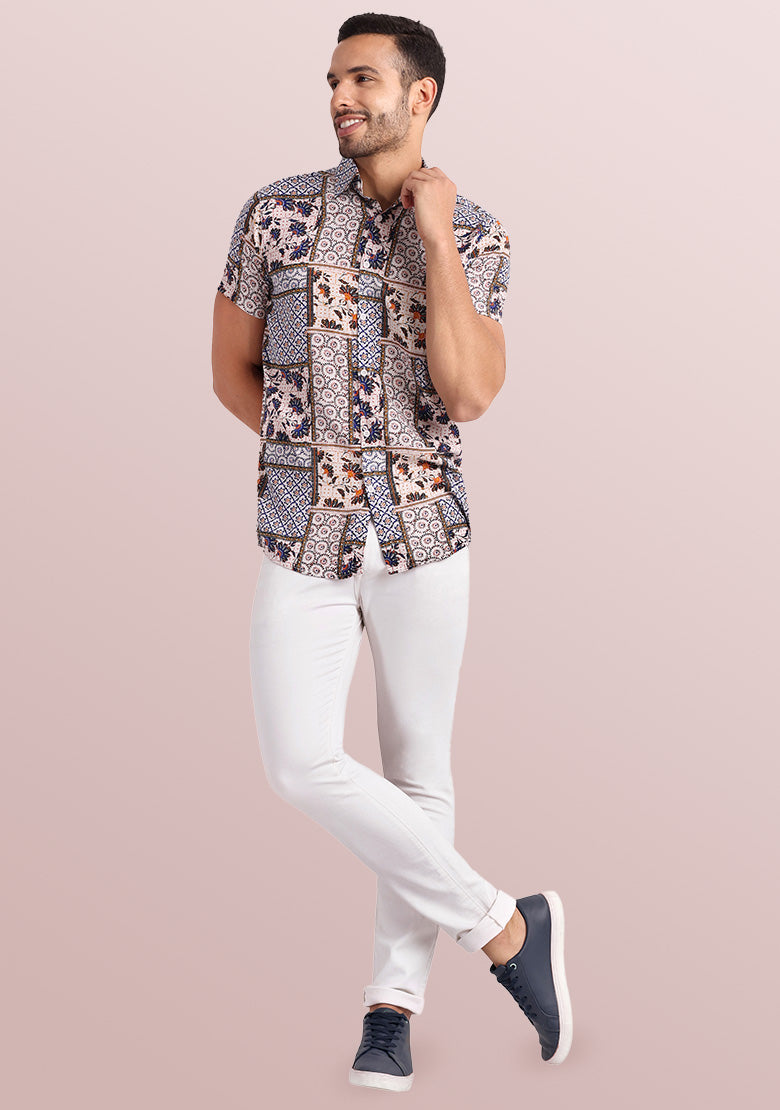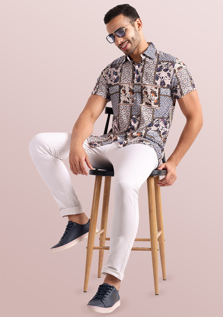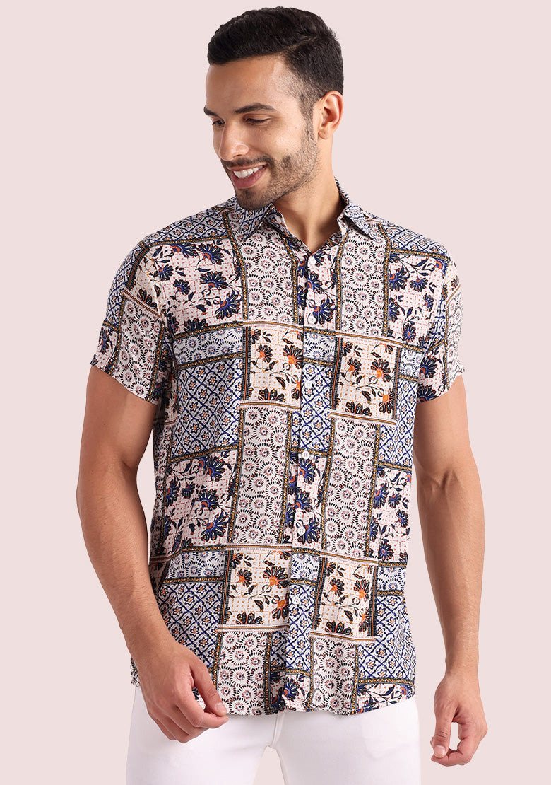 The shirt is made from high-quality viscose rayon fabric that is both lightweight and breathable, ensuring that you stay cool and comfortable all day long. The curved hemline adds a touch of modern style, making it perfect for pairing with slim-fit jeans, trousers, or chinos for a stylish and effortless look.