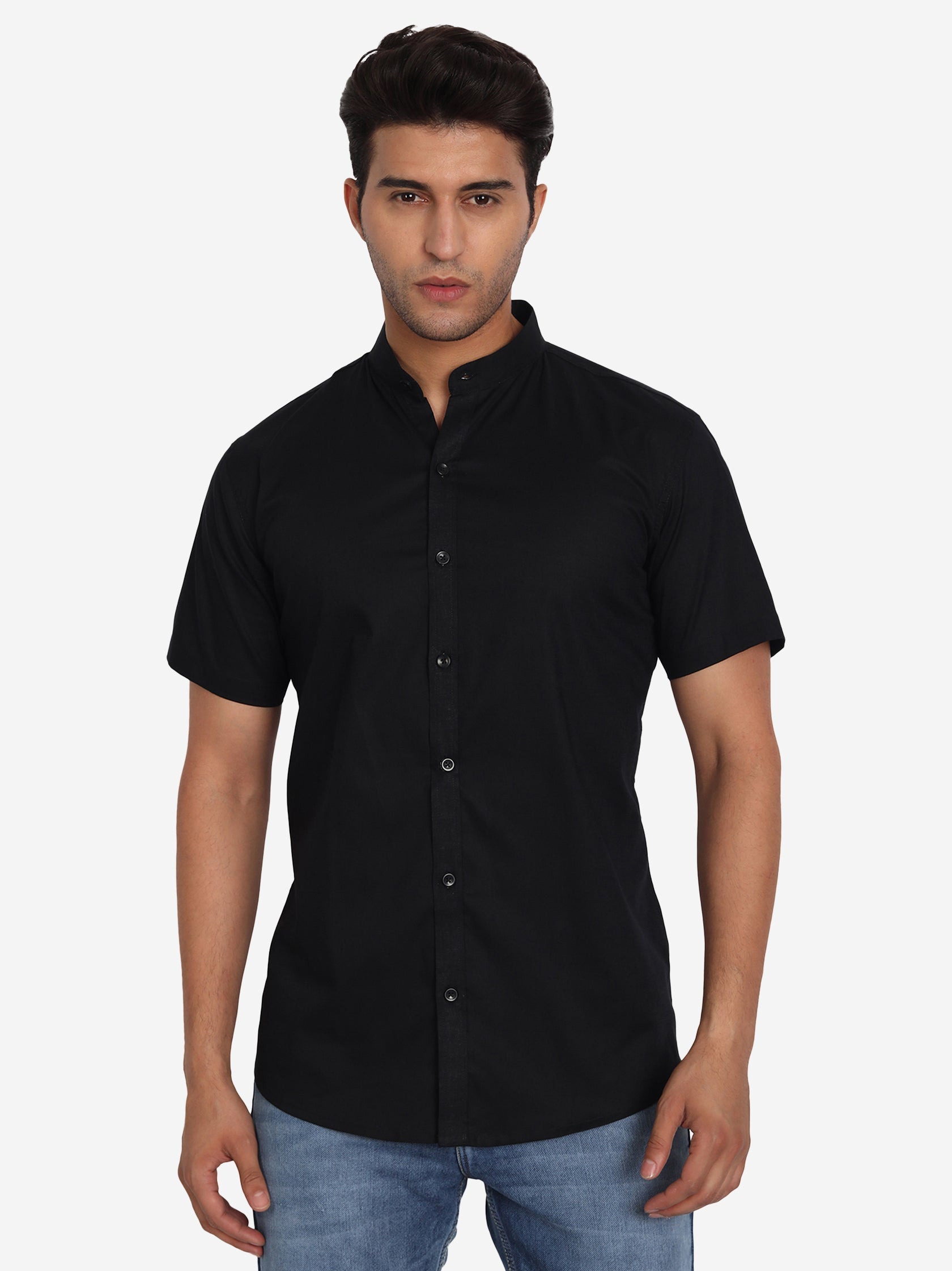 - Elevate your casual look with this Men Pure Cotton Mandarin Collar Casual Half Sleeve Shirt.