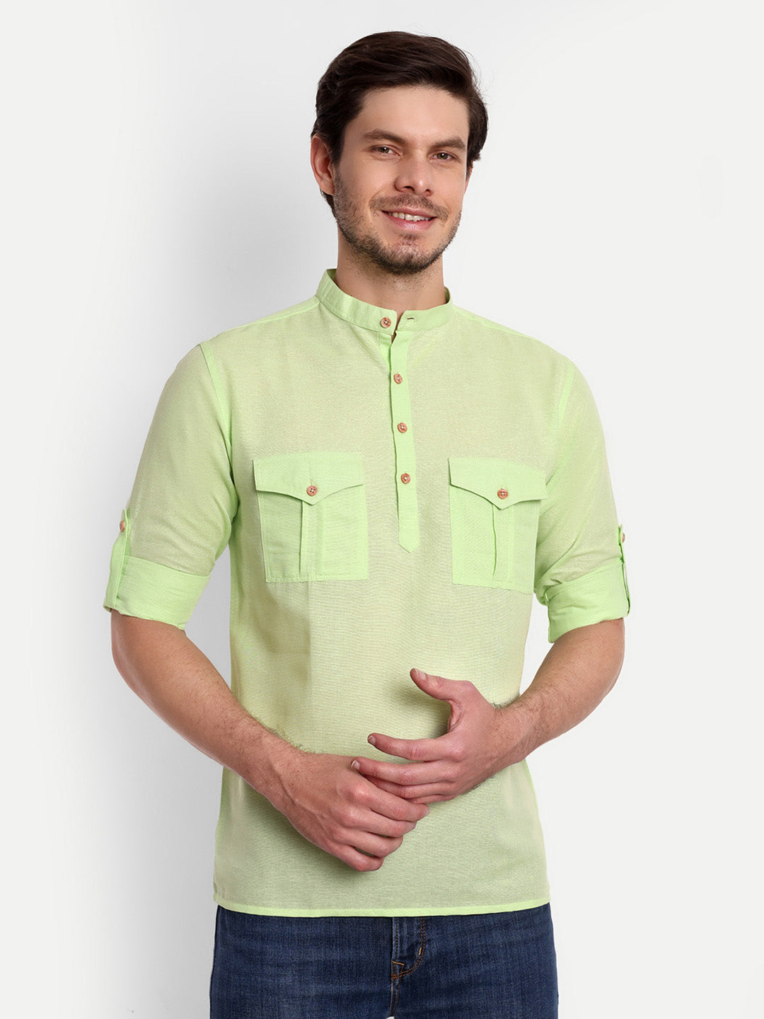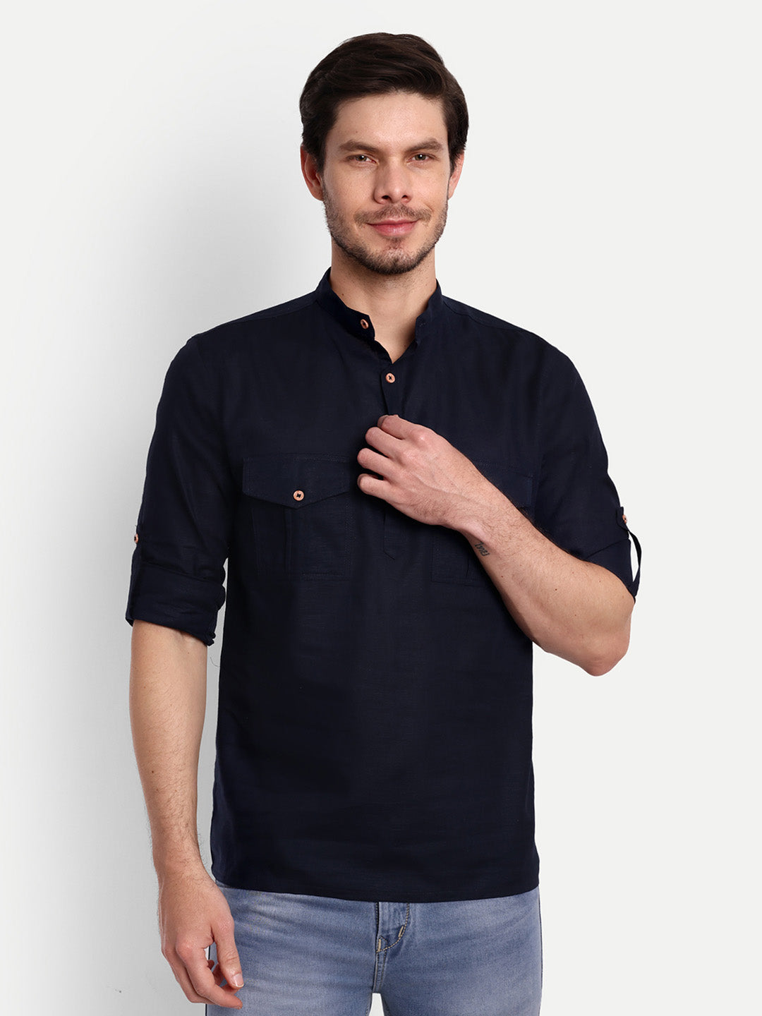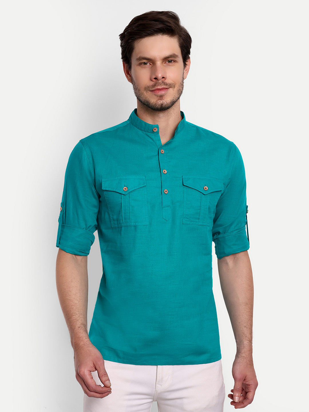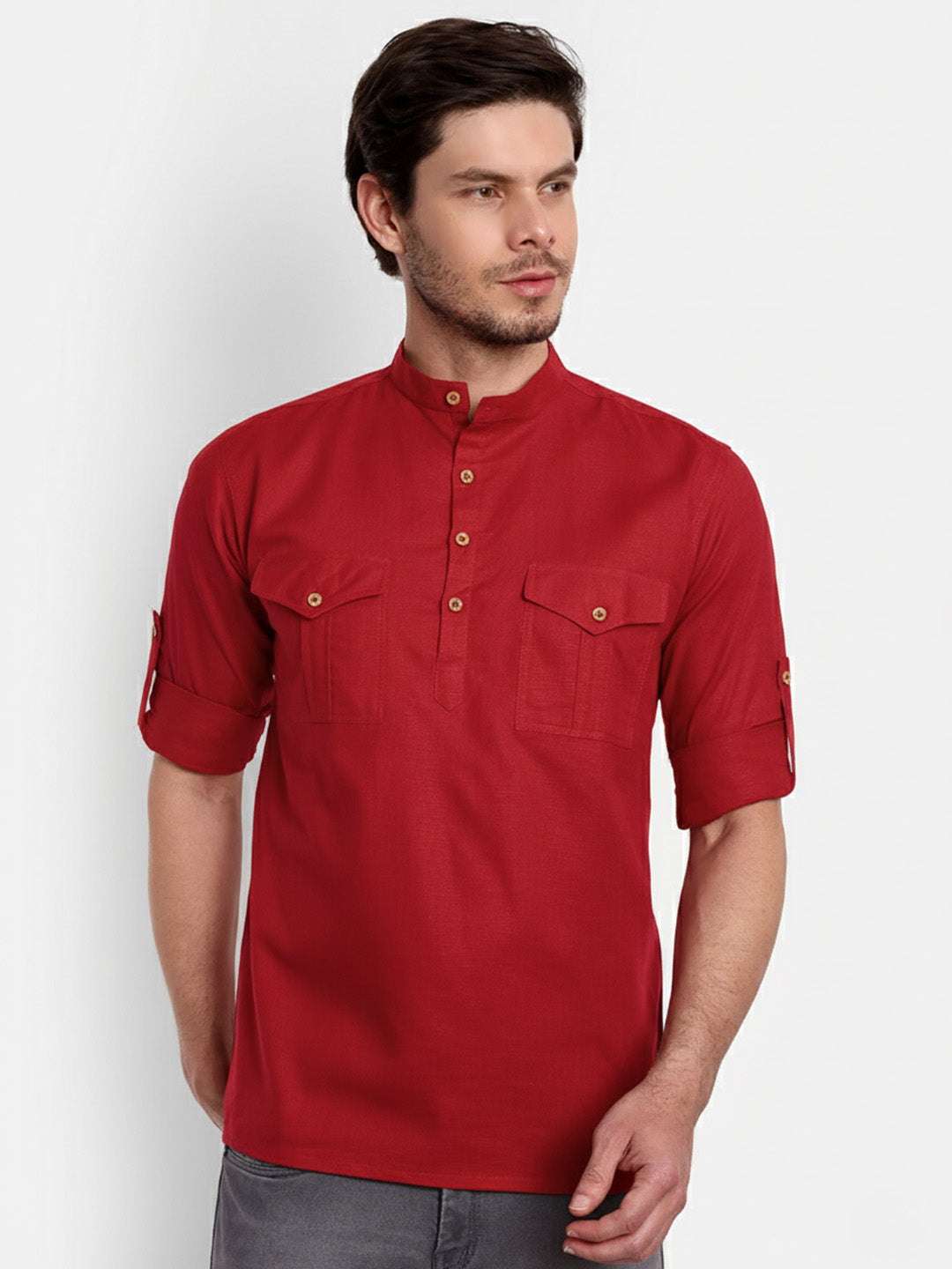 The Men's Casual Slim Fit Full Sleeve Cotton Short Kurta is a must-have in every man's wardrobe. It's crafted from soft and breathable cotton material, making it comfortable to wear all day long. The slim fit design accentuates the natural contours of your body, giving you a sharp and stylish look. The double pocket design adds a touch of utility to this kurta, making it a versatile piece that can be dressed up or down depending on the occasion. The mandarin collar adds a touch of sophistication, making it perfect for formal events and semi-formal gatherings. With its stylish design and practical features, this kurta is a great choice for any man looking to elevate his fashion game.