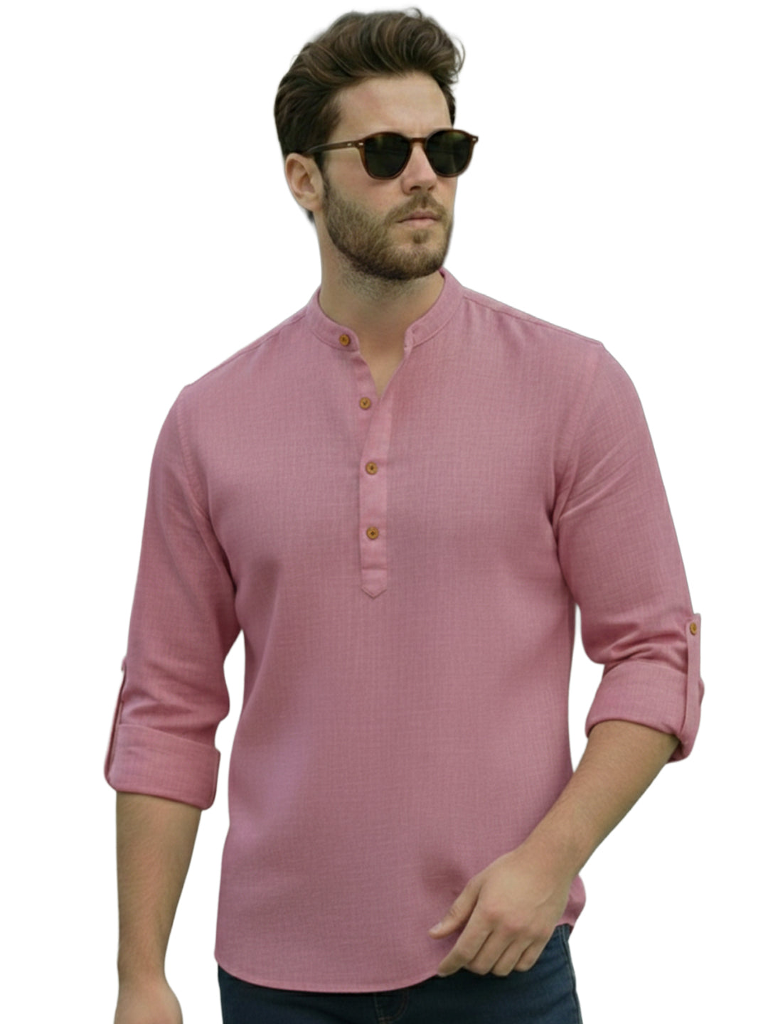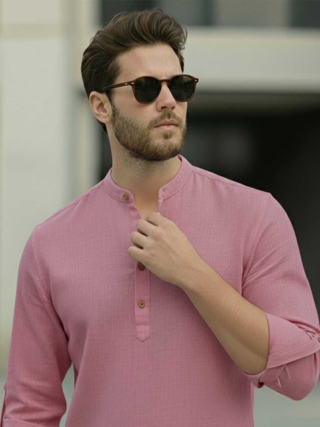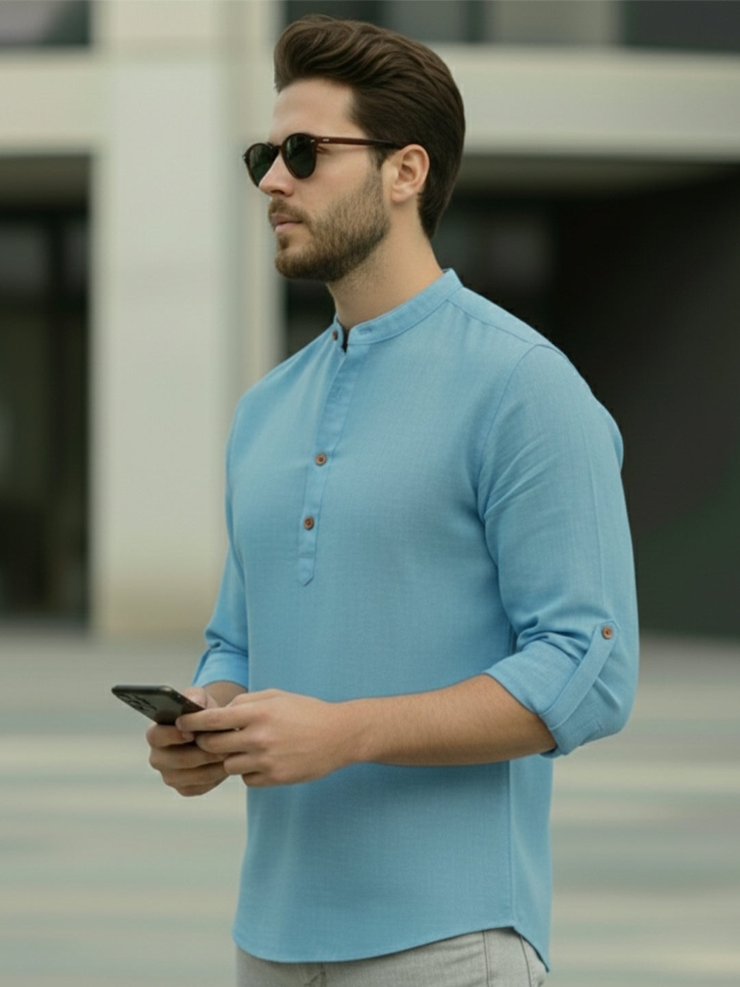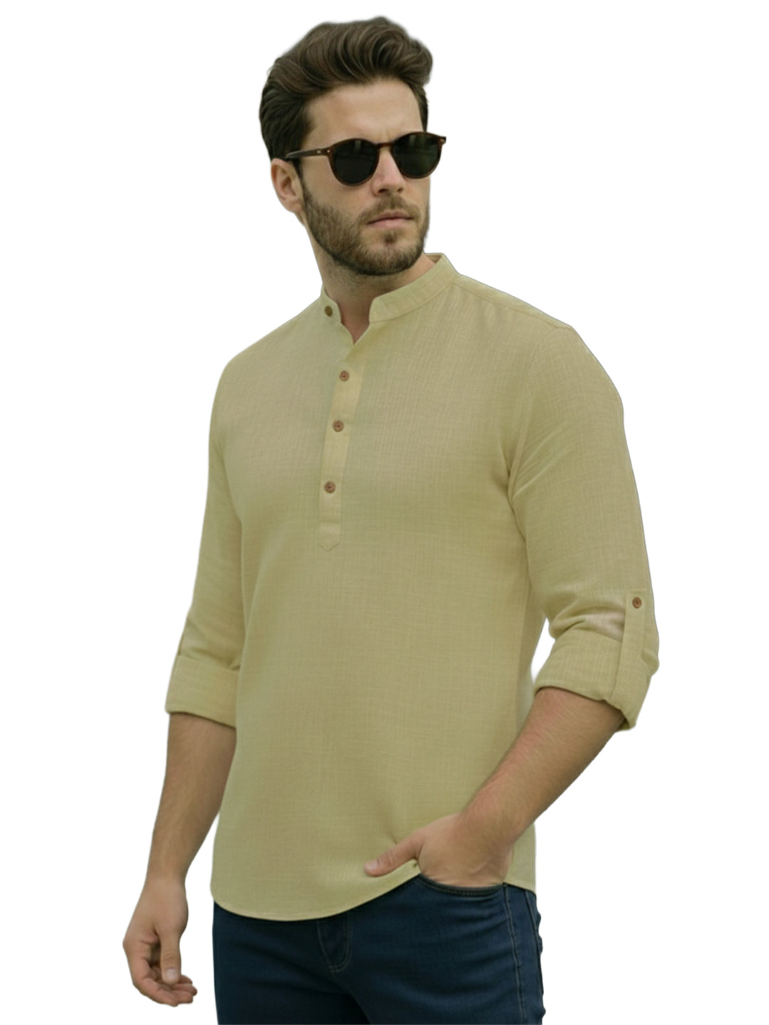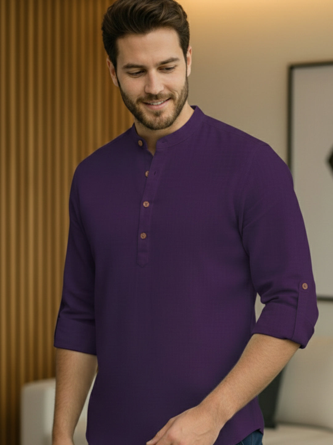 This Men's Full Sleeve Casual Cotton Short Kurta is a stylish and comfortable piece of clothing that is perfect for any casual occasion. Made with 100% cotton fabric, it is soft and breathable, making it ideal for all-day wear. The curved hemline and spread collar give it a smart and sophisticated look, while the button closure ensures a comfortable and secure fit. The full roll-up style sleeves make it easy to adjust the length of the sleeves to suit your preference, and the left pocket adds a practical touch. Available in various colors and sizes, this kurta is a versatile piece that will quickly become a staple in your wardrobe. And with its easy-to-follow wash care instructions, it is also low-maintenance, making it the perfect choice for busy, on-the-go guys.