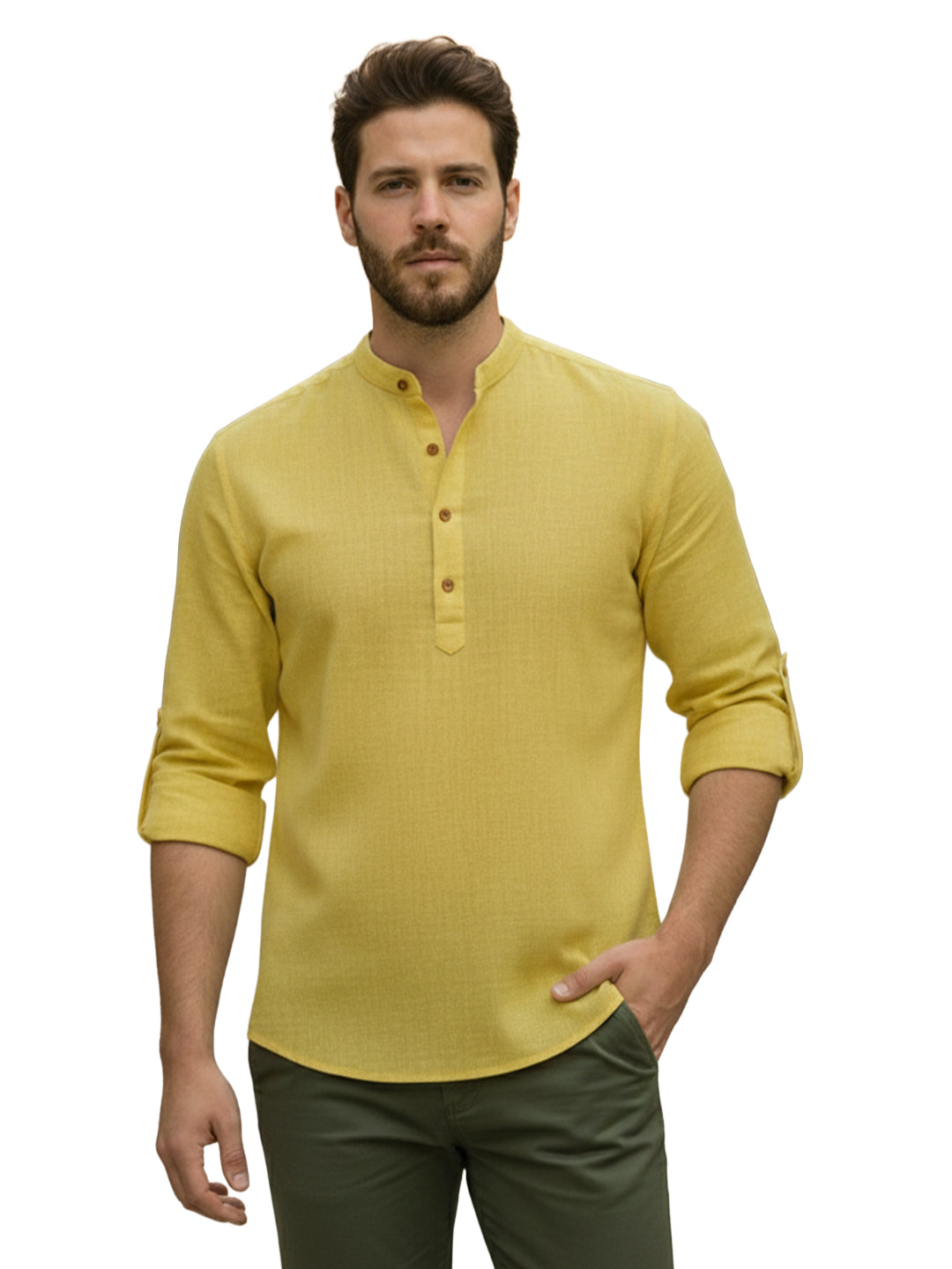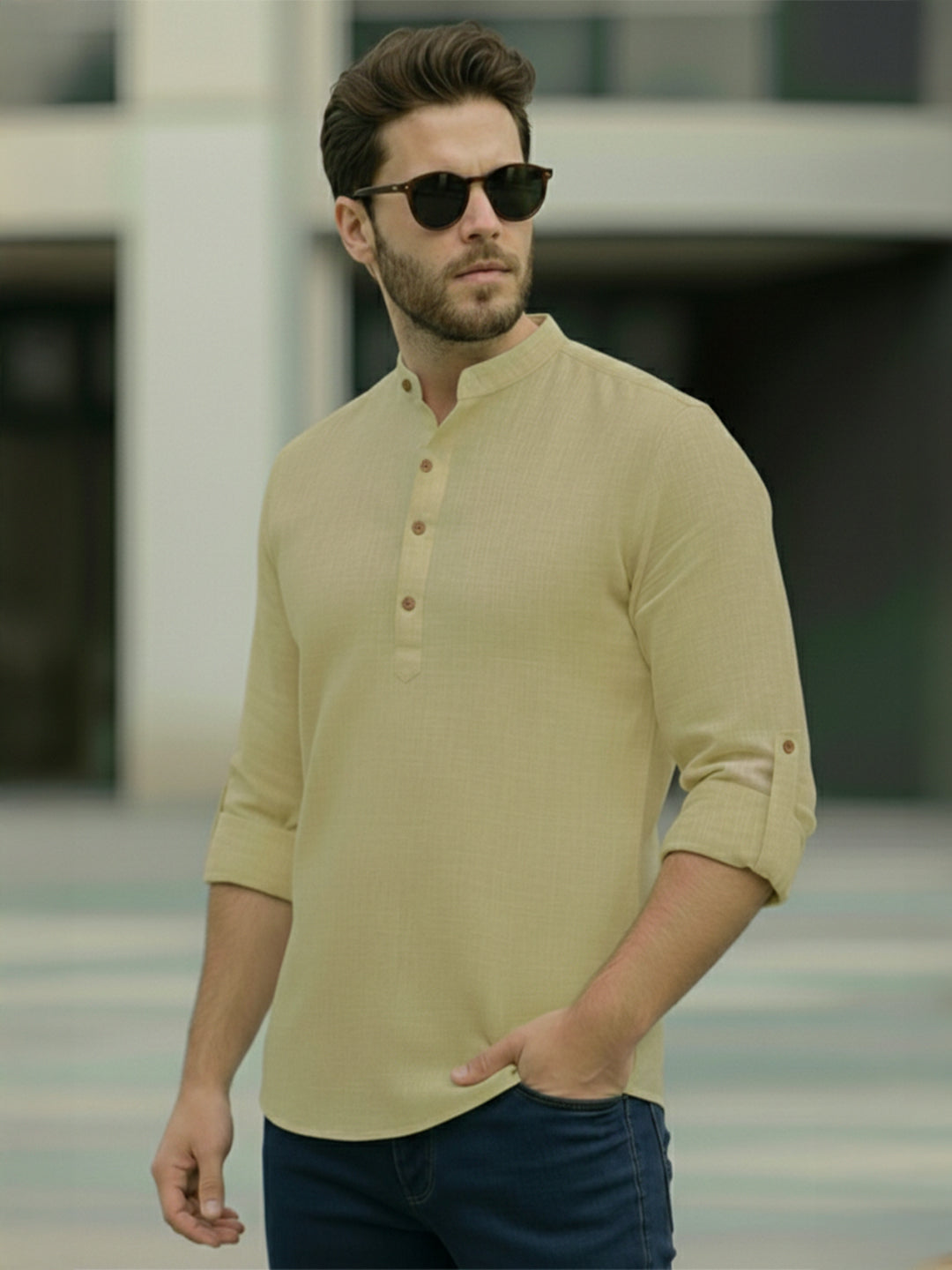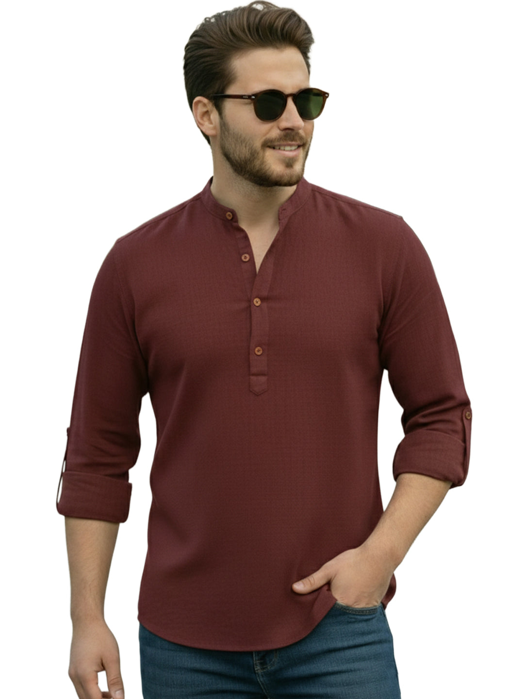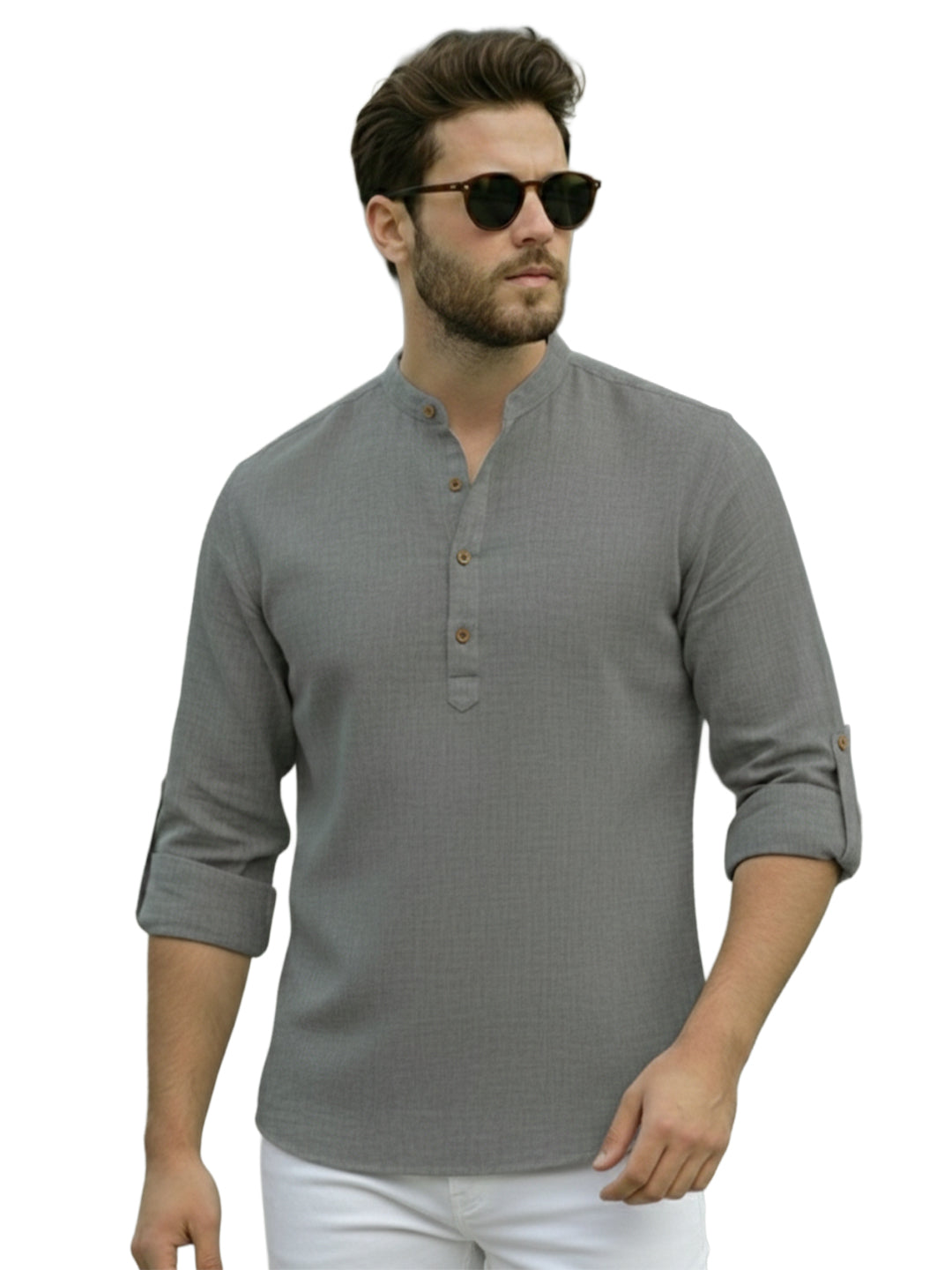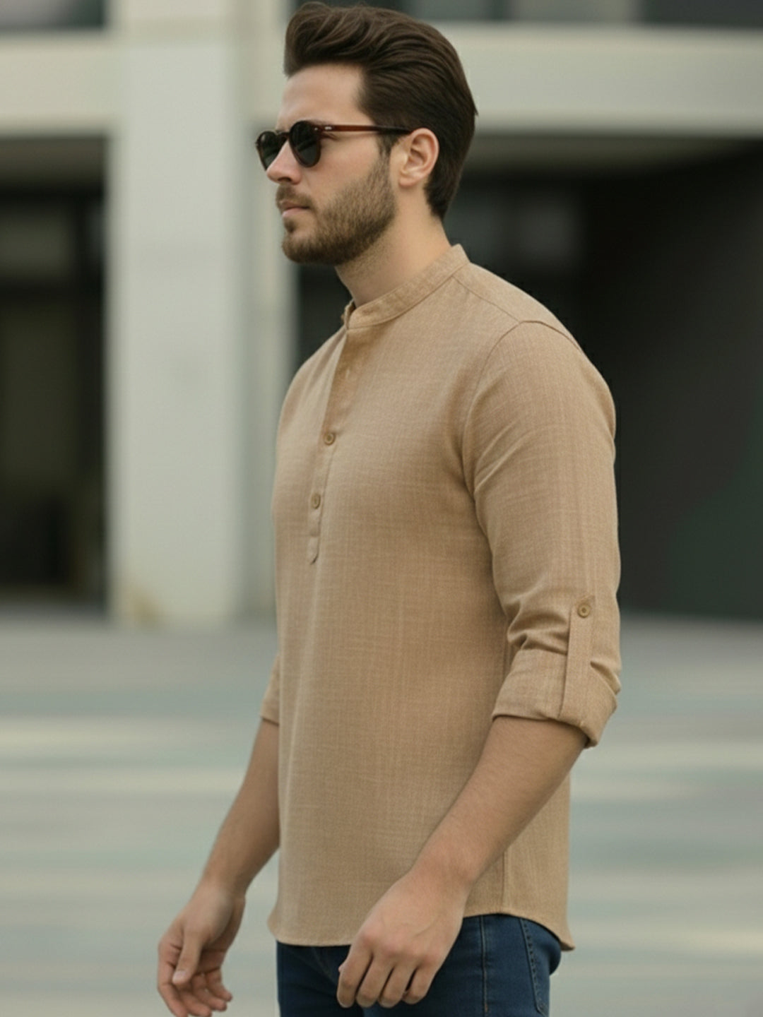 This Men's Full Sleeve Casual Cotton Short Kurta is a stylish and comfortable piece of clothing that is perfect for any casual occasion. Made with 100% cotton fabric, it is soft and breathable, making it ideal for all-day wear. The curved hemline and spread collar give it a smart and sophisticated look, while the button closure ensures a comfortable and secure fit. The full roll-up style sleeves make it easy to adjust the length of the sleeves to suit your preference, and the left pocket adds a practical touch. Available in various colors and sizes, this kurta is a versatile piece that will quickly become a staple in your wardrobe. And with its easy-to-follow wash care instructions, it is also low-maintenance, making it the perfect choice for busy, on-the-go guys.