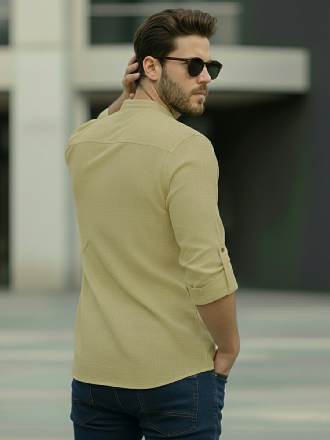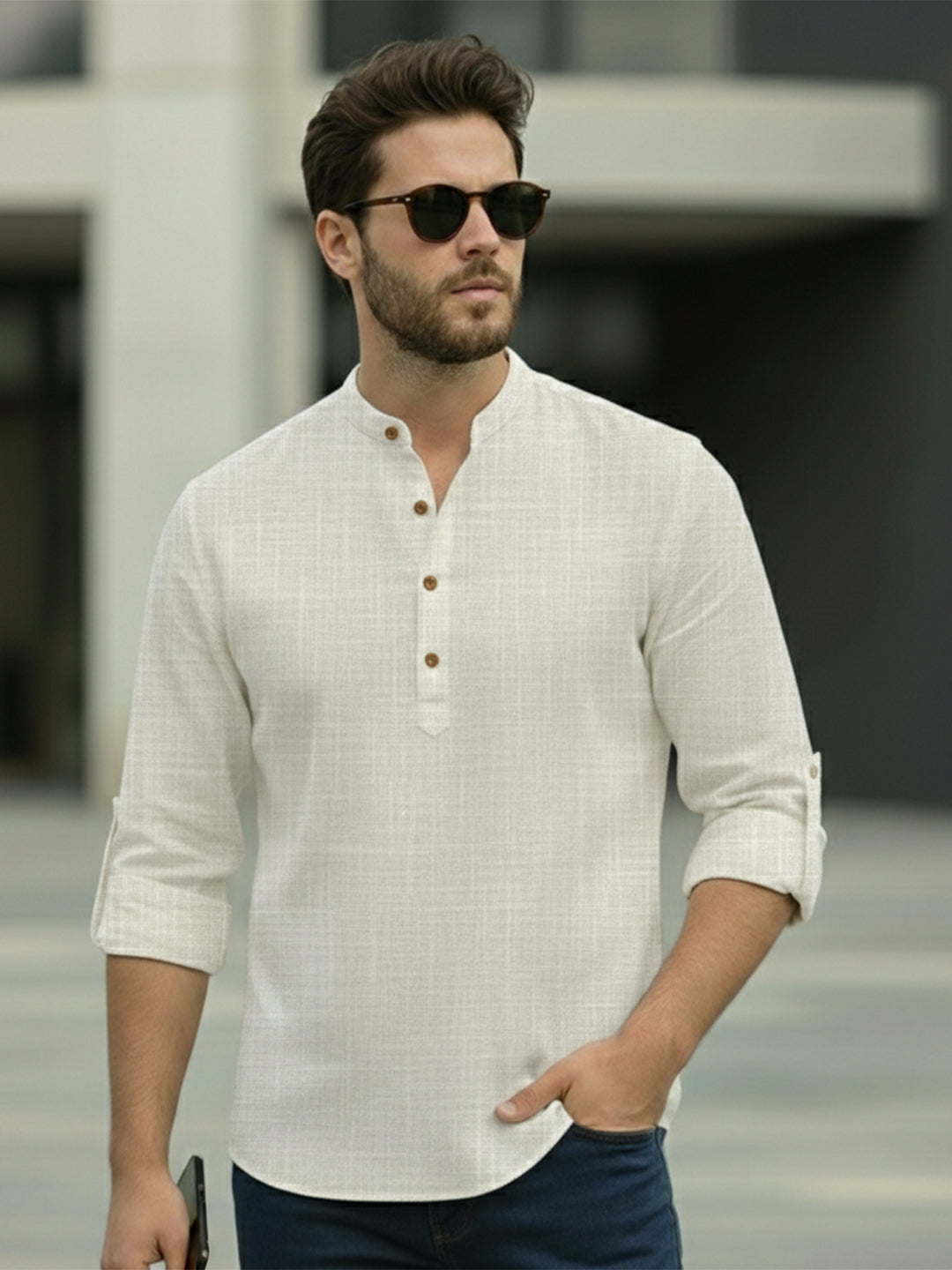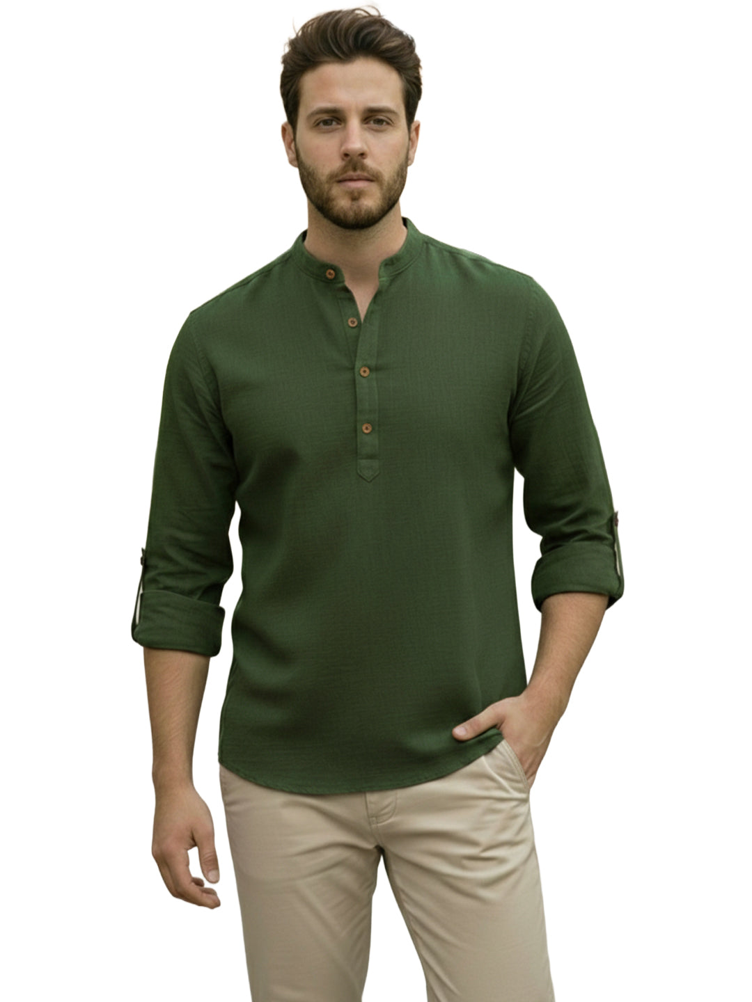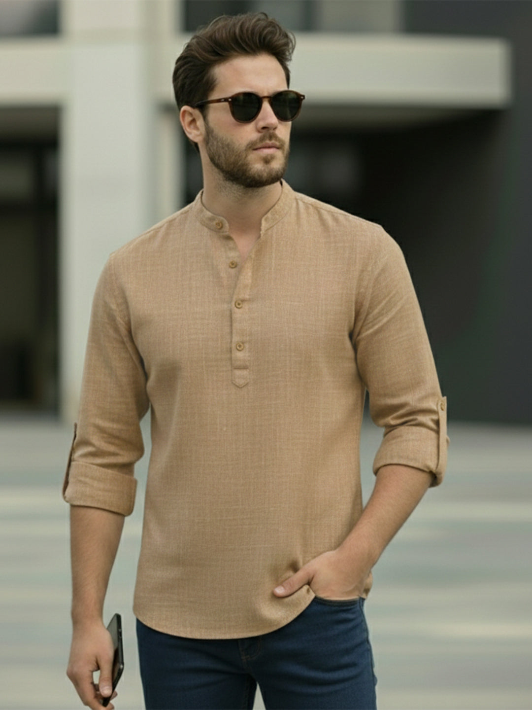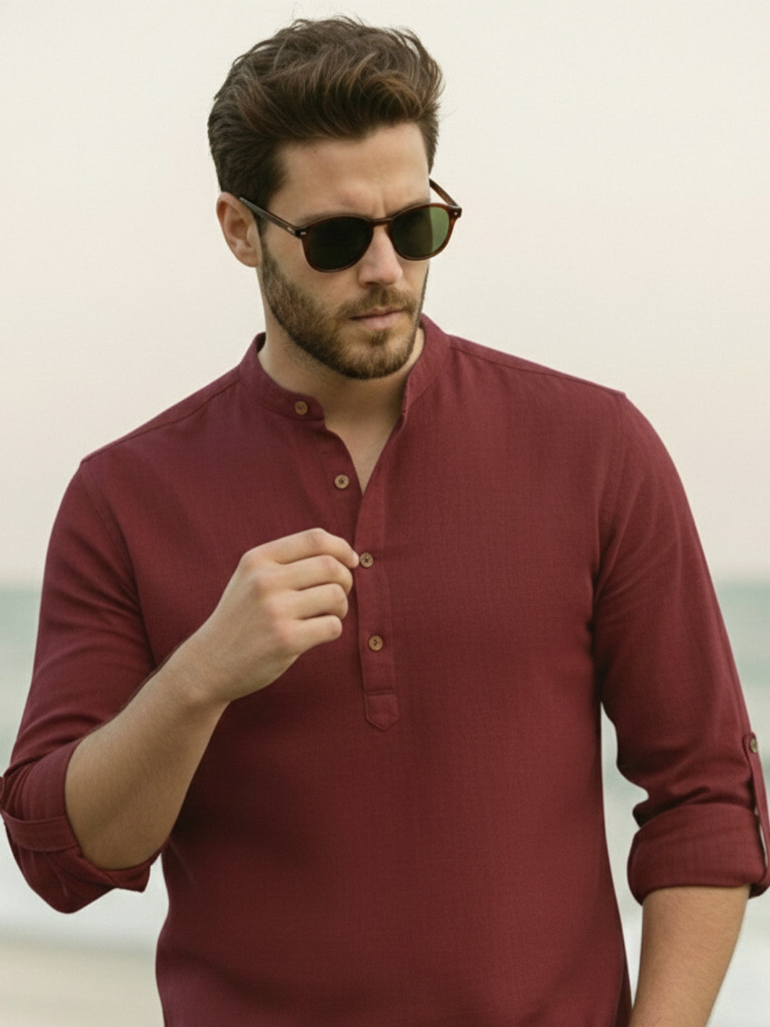 This Men's Full Sleeve Casual Cotton Short Kurta is a stylish and comfortable piece of clothing that is perfect for any casual occasion. Made with 100% cotton fabric, it is soft and breathable, making it ideal for all-day wear. The curved hemline and spread collar give it a smart and sophisticated look, while the button closure ensures a comfortable and secure fit. The full roll-up style sleeves make it easy to adjust the length of the sleeves to suit your preference, and the left pocket adds a practical touch. Available in various colors and sizes, this kurta is a versatile piece that will quickly become a staple in your wardrobe. And with its easy-to-follow wash care instructions, it is also low-maintenance, making it the perfect choice for busy, on-the-go guys.