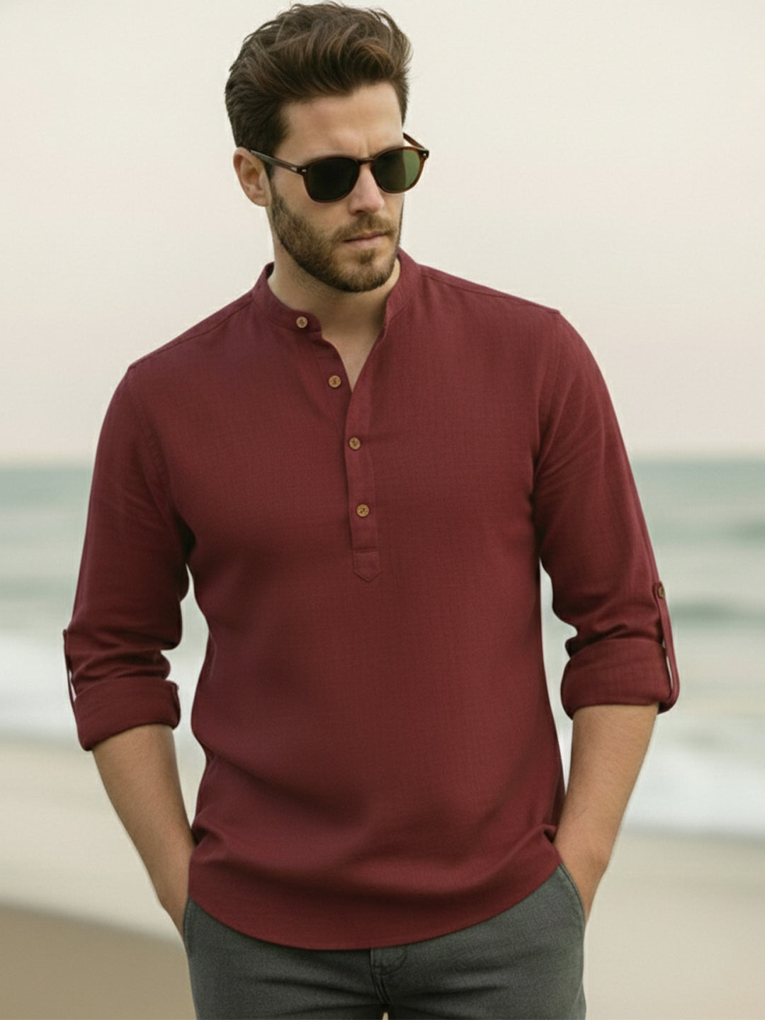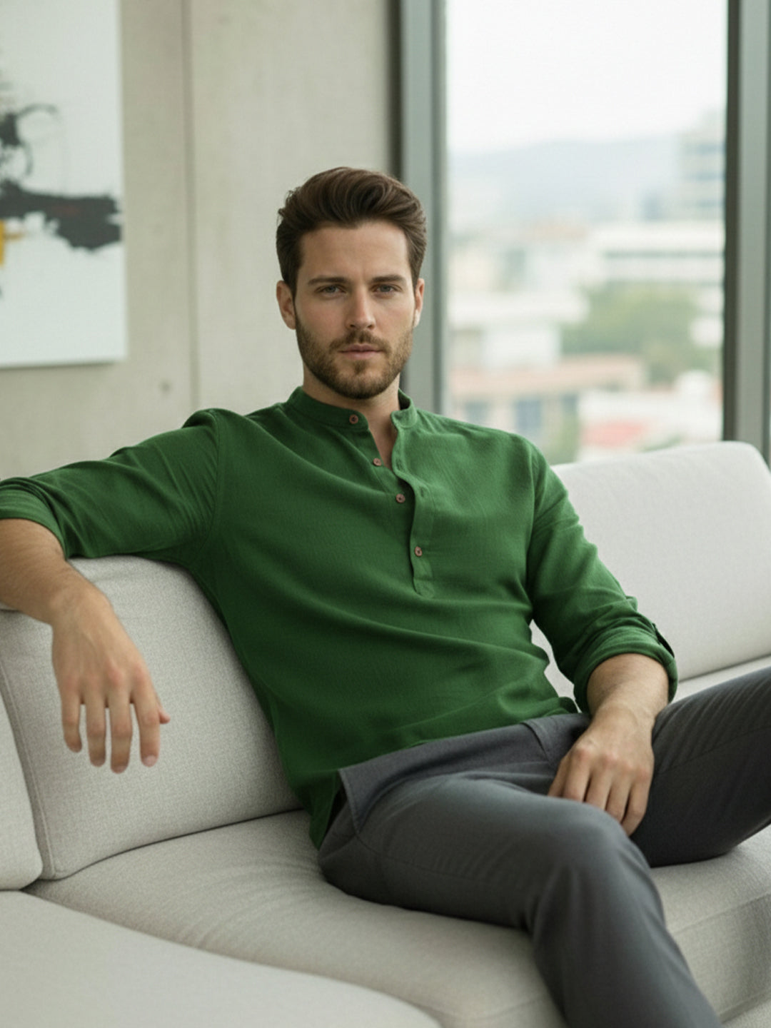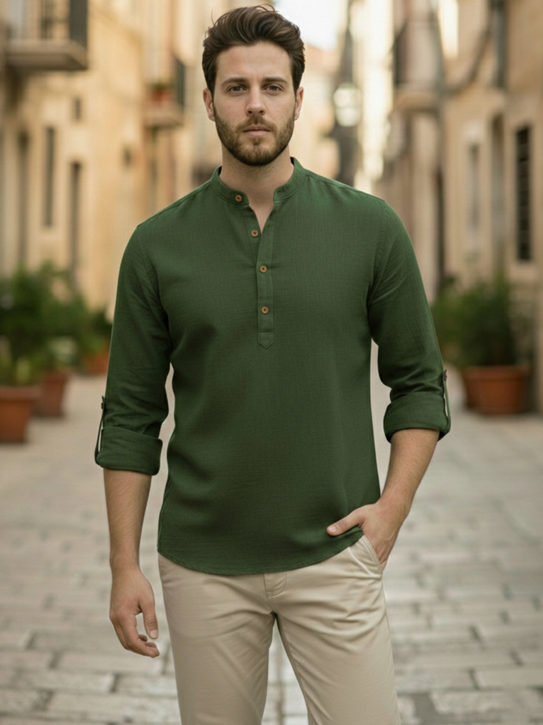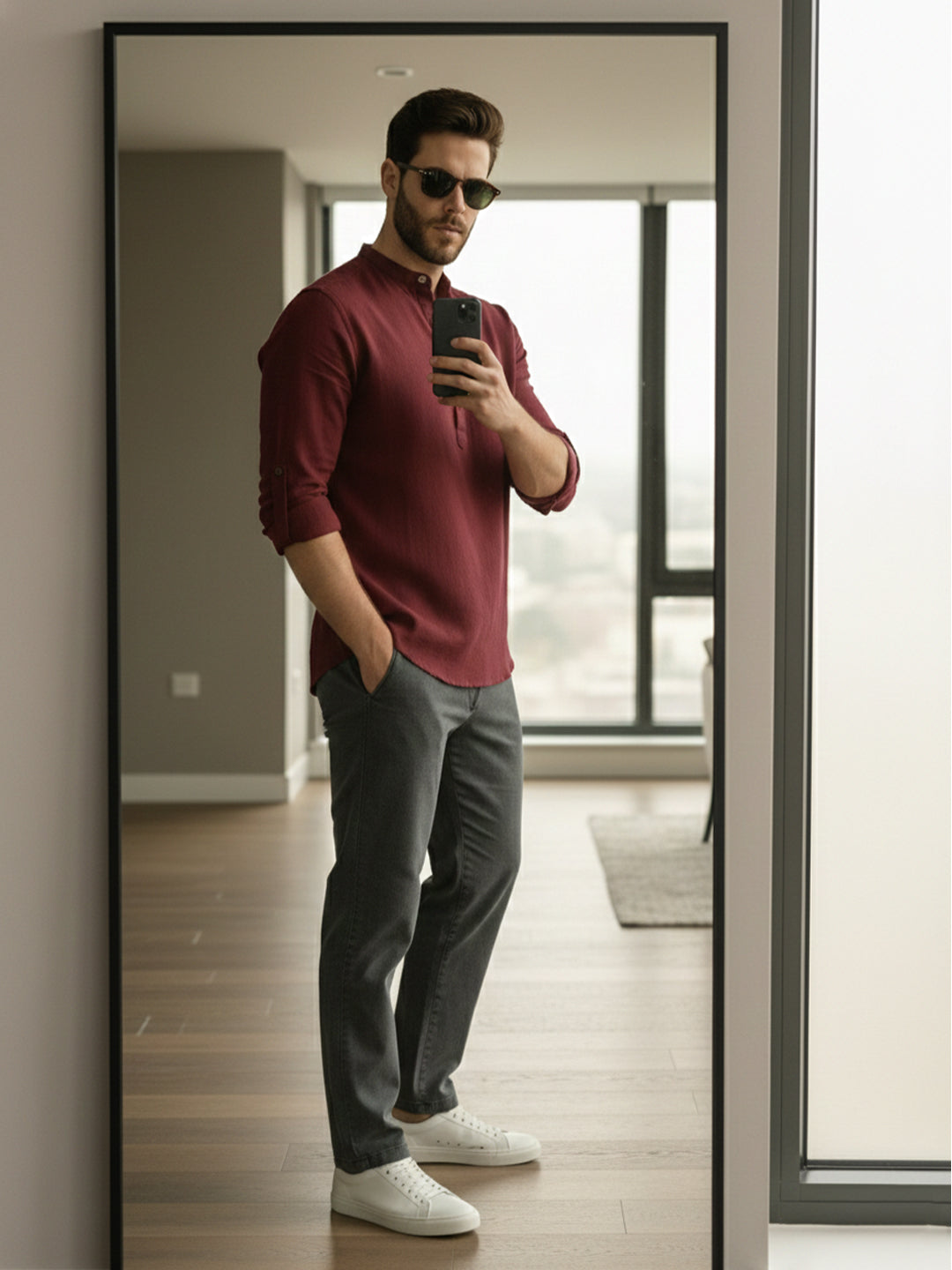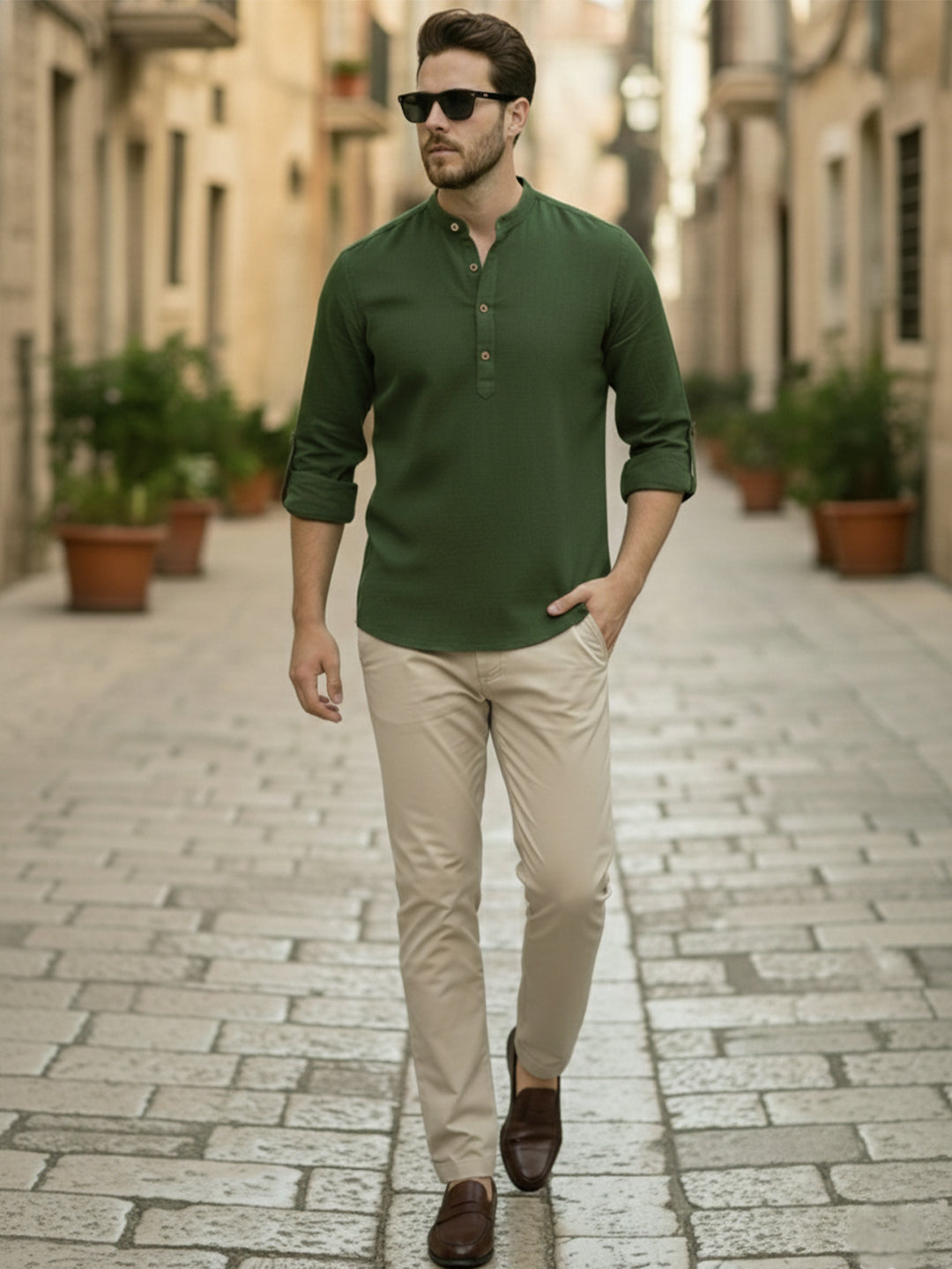 This Men's Full Sleeve Casual Cotton Short Kurta is a stylish and comfortable piece of clothing that is perfect for any casual occasion. Made with 100% cotton fabric, it is soft and breathable, making it ideal for all-day wear. The curved hemline and spread collar give it a smart and sophisticated look, while the button closure ensures a comfortable and secure fit. The full roll-up style sleeves make it easy to adjust the length of the sleeves to suit your preference, and the left pocket adds a practical touch. Available in various colors and sizes, this kurta is a versatile piece that will quickly become a staple in your wardrobe. And with its easy-to-follow wash care instructions, it is also low-maintenance, making it the perfect choice for busy, on-the-go guys.