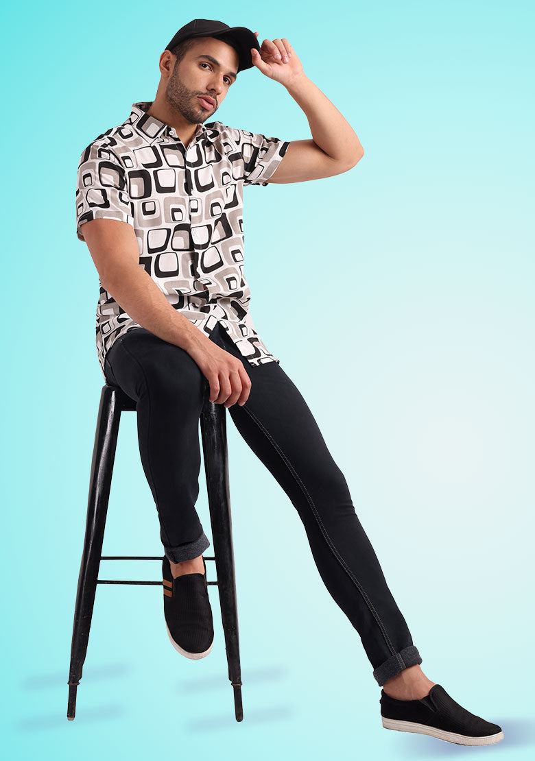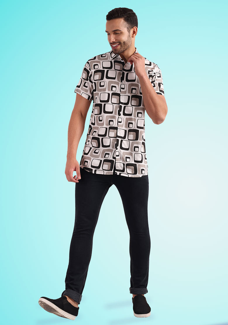 Introducing the all-new Vashuqi Printed Button-Up Shirt in classic Grey! Experience the perfect blend of style and comfort with this exquisite shirt. Here are the key details: